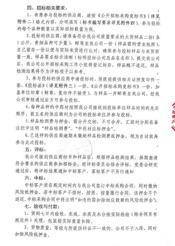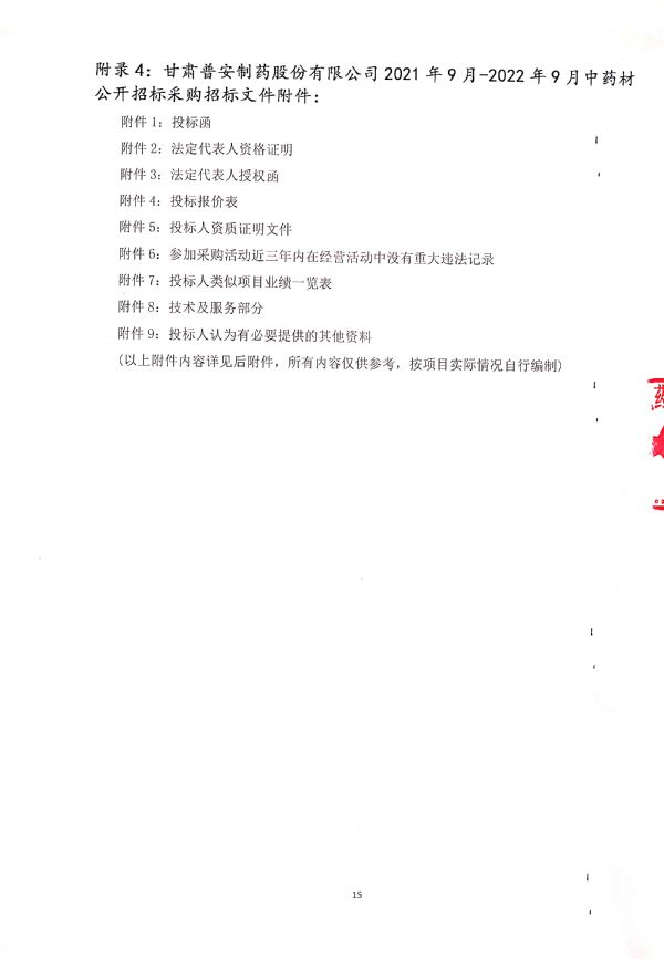 甘肅普安制藥股份有限公司 2021年9月-2022年9月中藥材公開招標采購公告