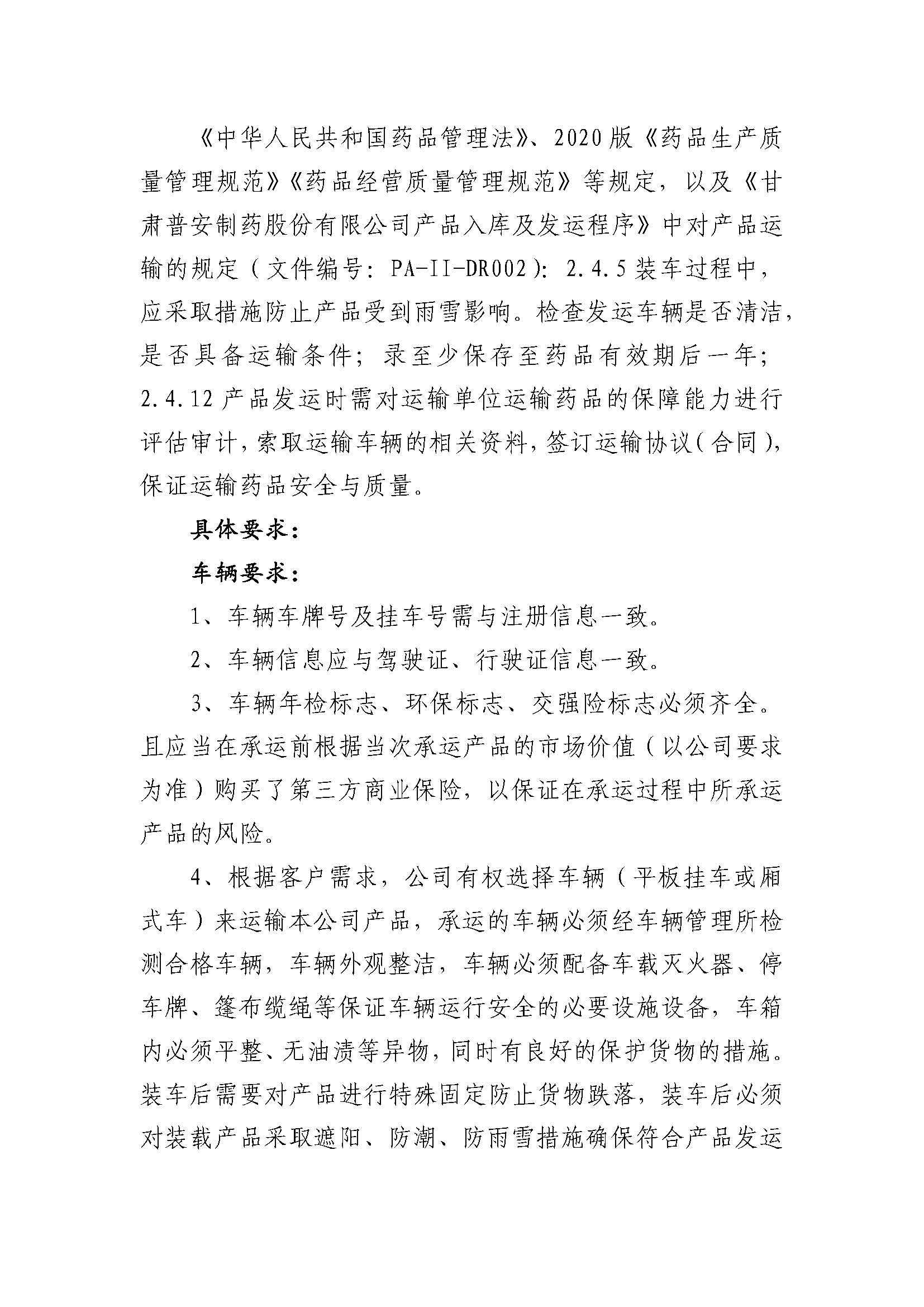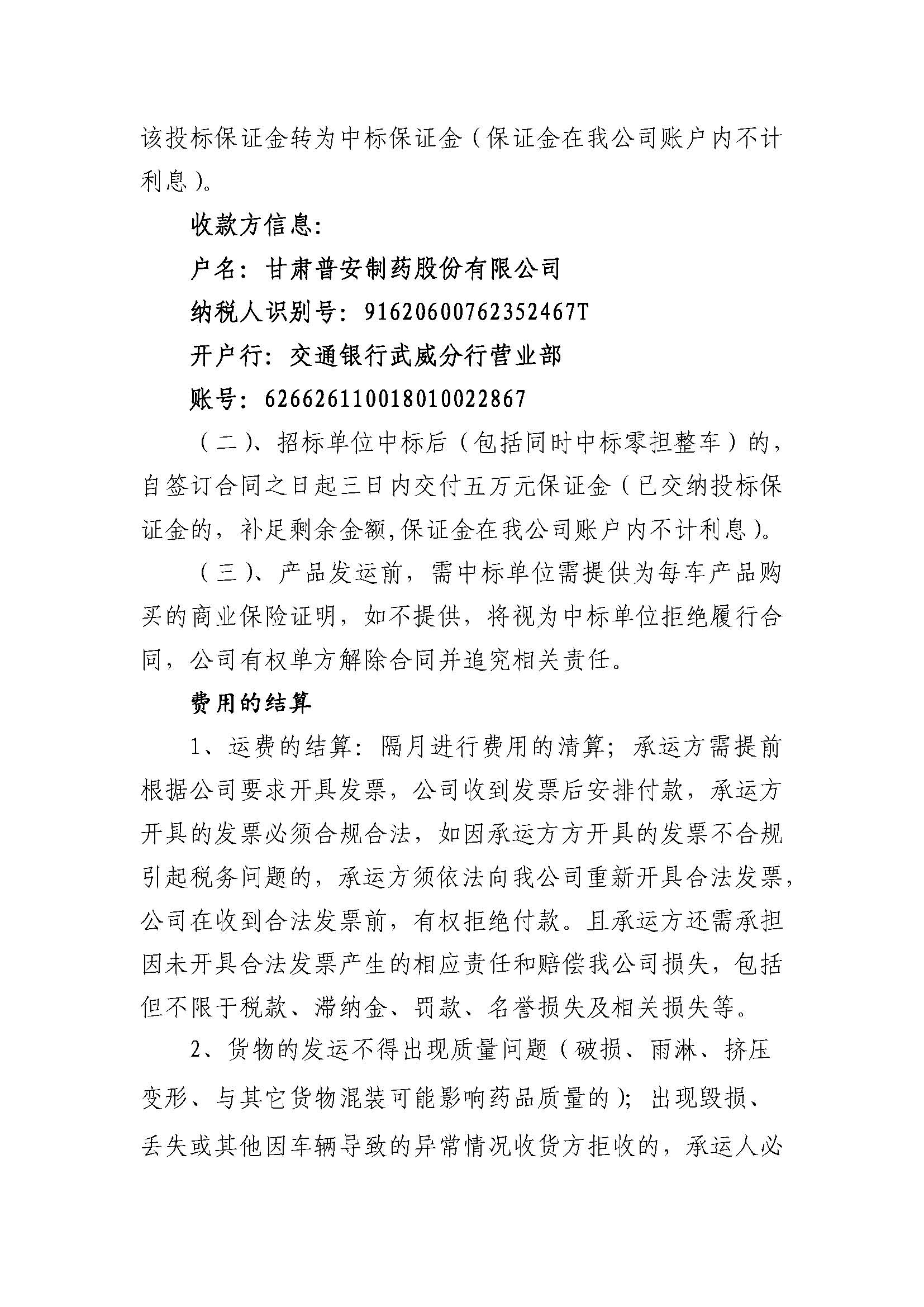 甘肅普安制藥股份有限公司宣肺止嗽合劑2022年承運人招標公告