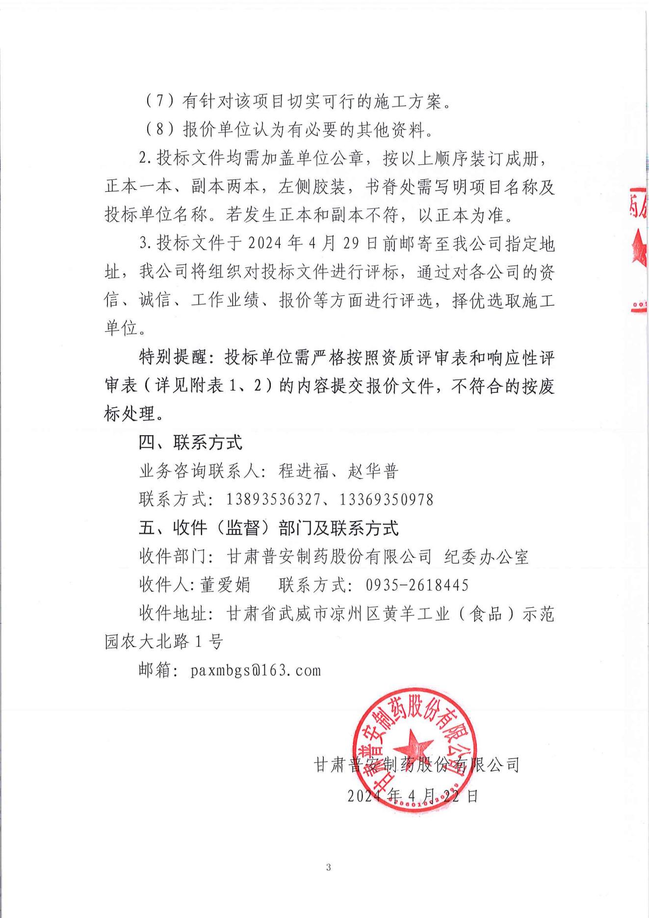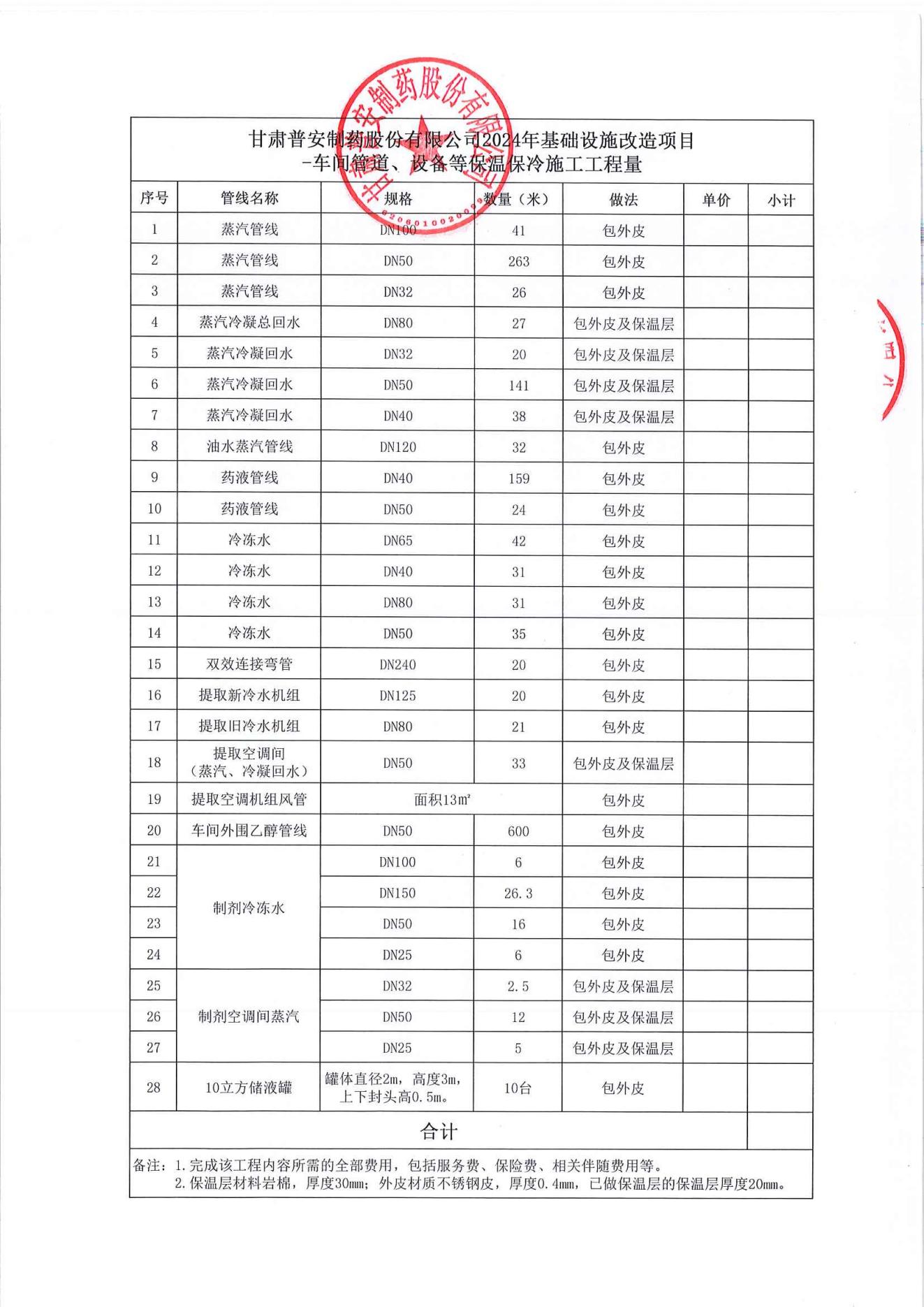 甘肅普安制藥股份有限公司2024年基礎設施改造項目-車間管道、設備等保溫保冷施工招標公告