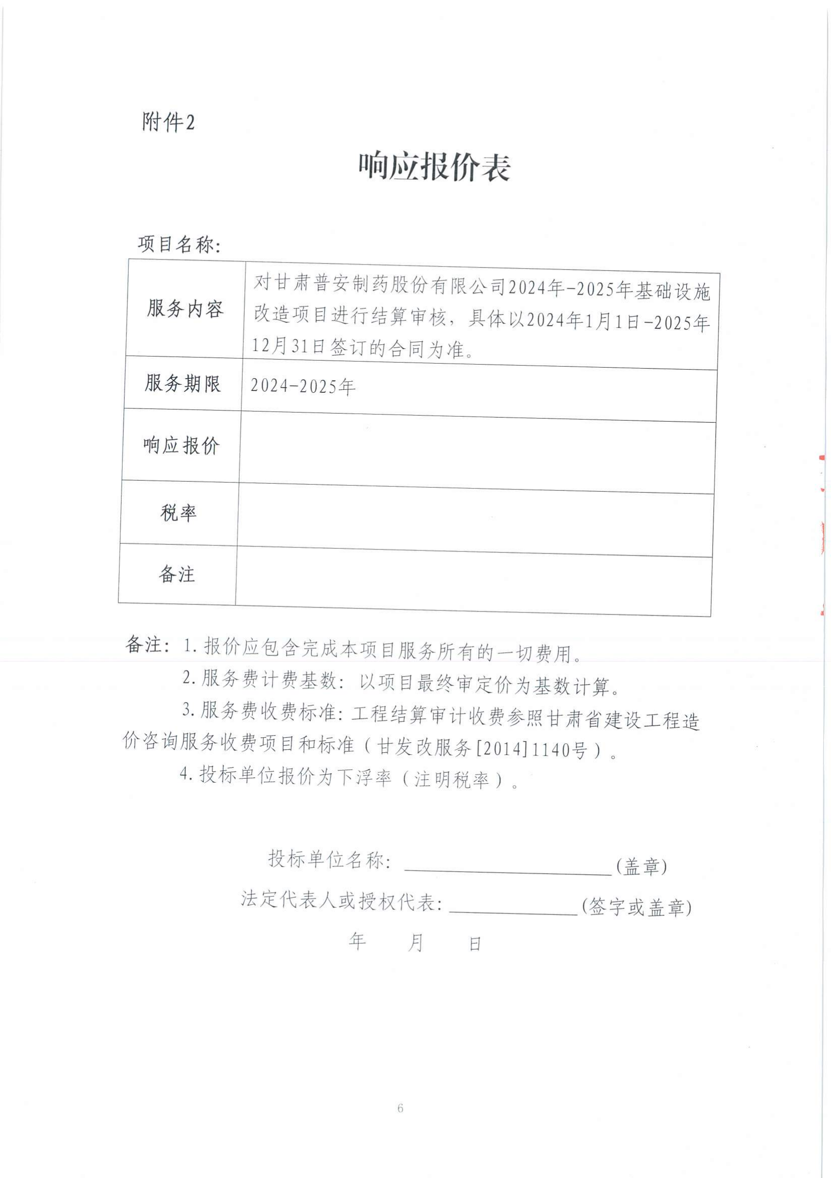 甘肅普安制藥股份有限公司2024年-2025年基礎設施改造項目結算審核服務第二次招標公告