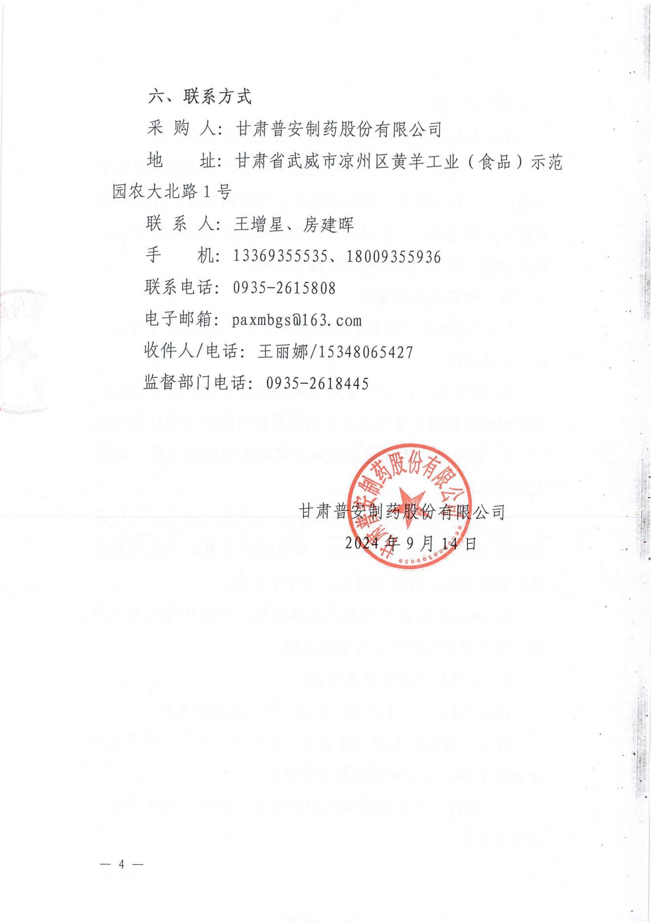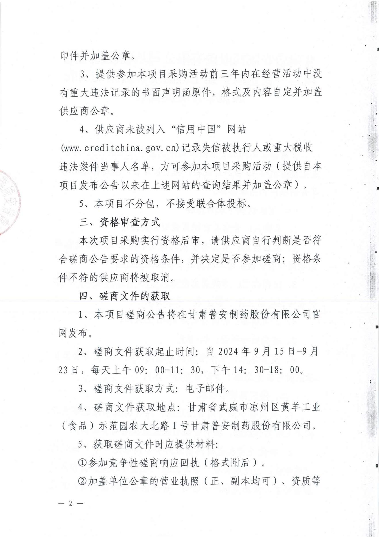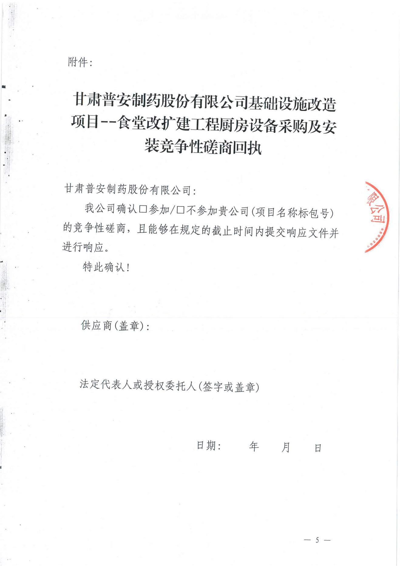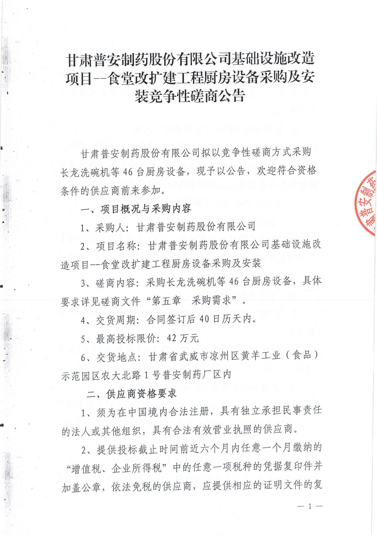 甘肅普安制藥股份有限公司基礎設施改造項目--食堂改擴建工程廚房設備采購及安裝競爭性磋商公告