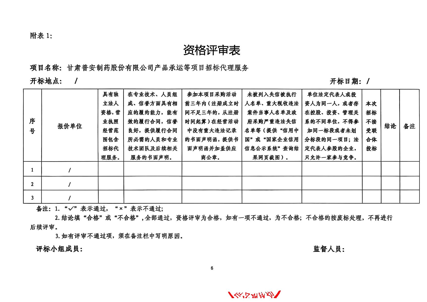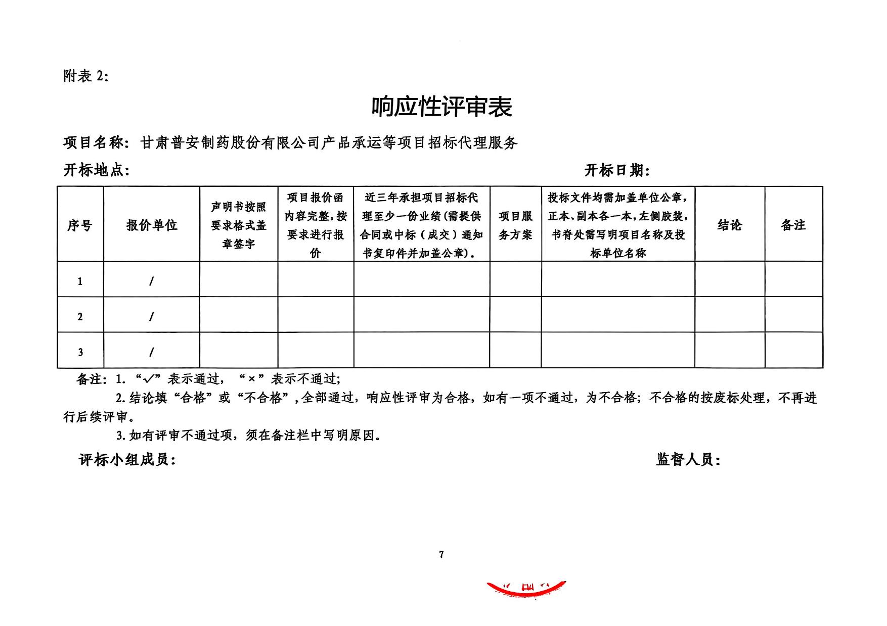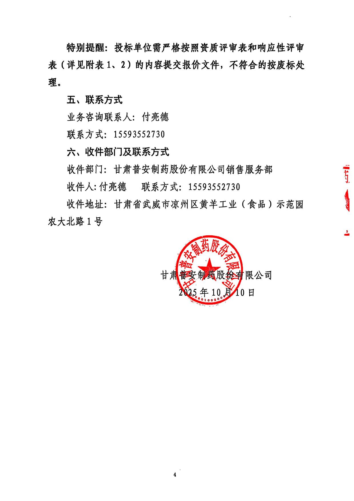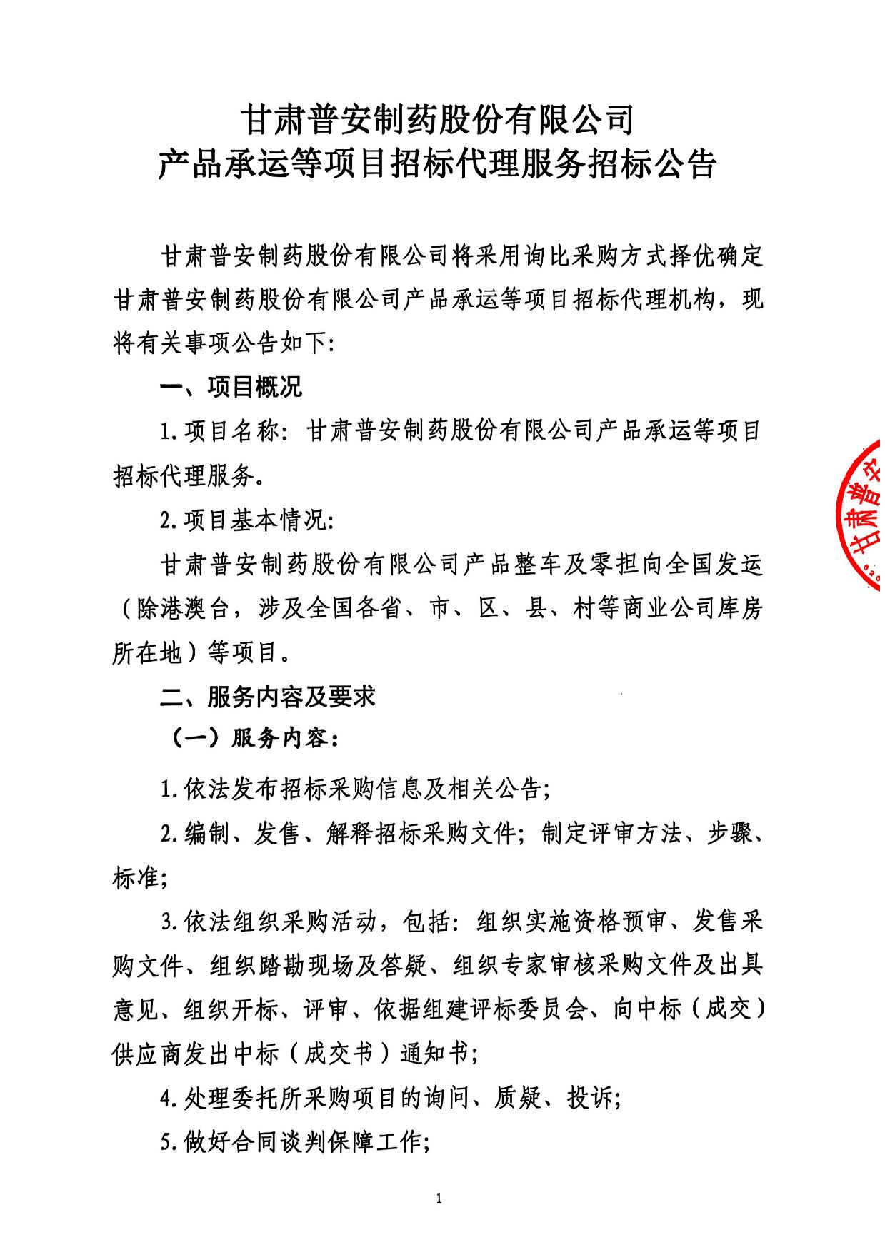 甘肅普安制藥股份有限公司產品承運等項目招標代理服務招標公告
