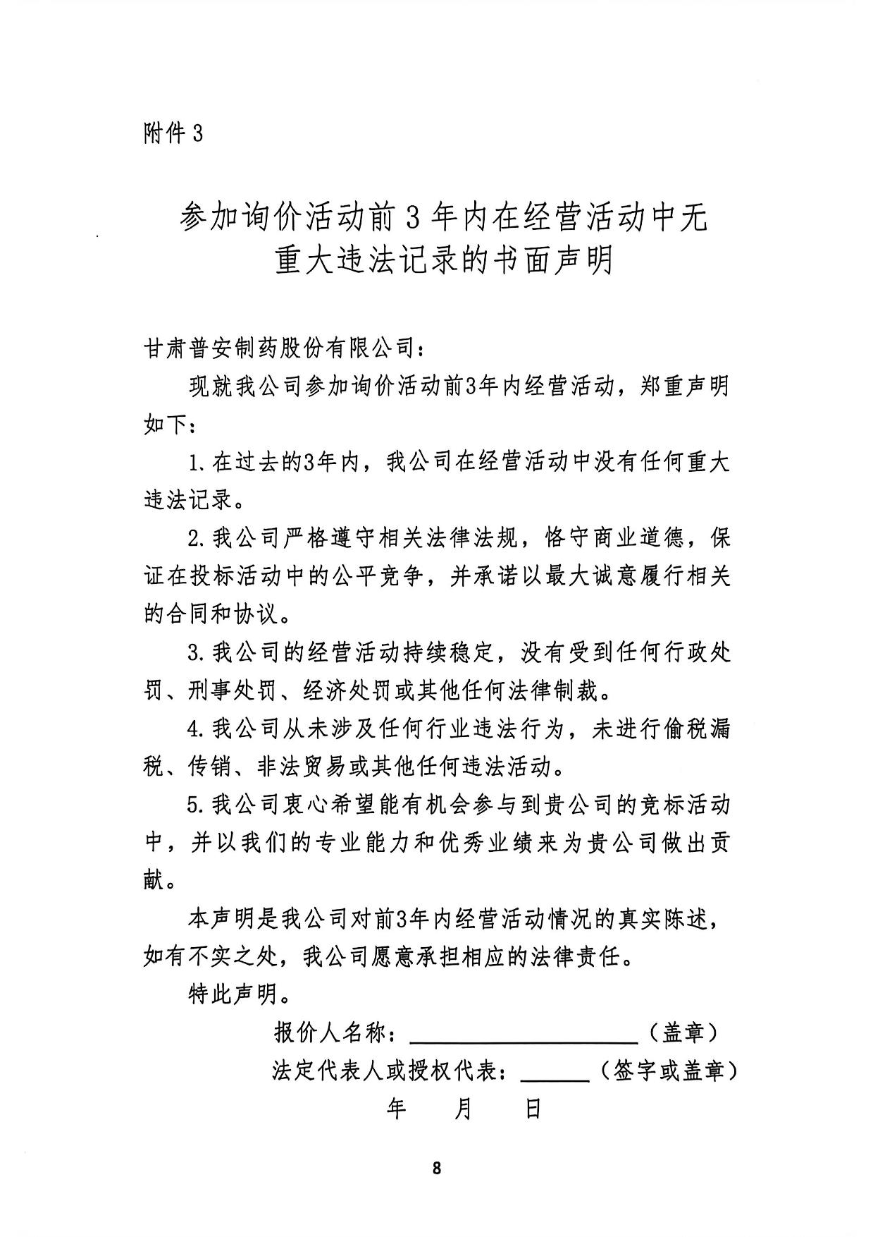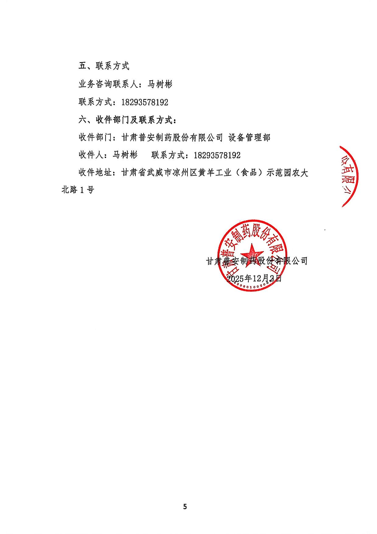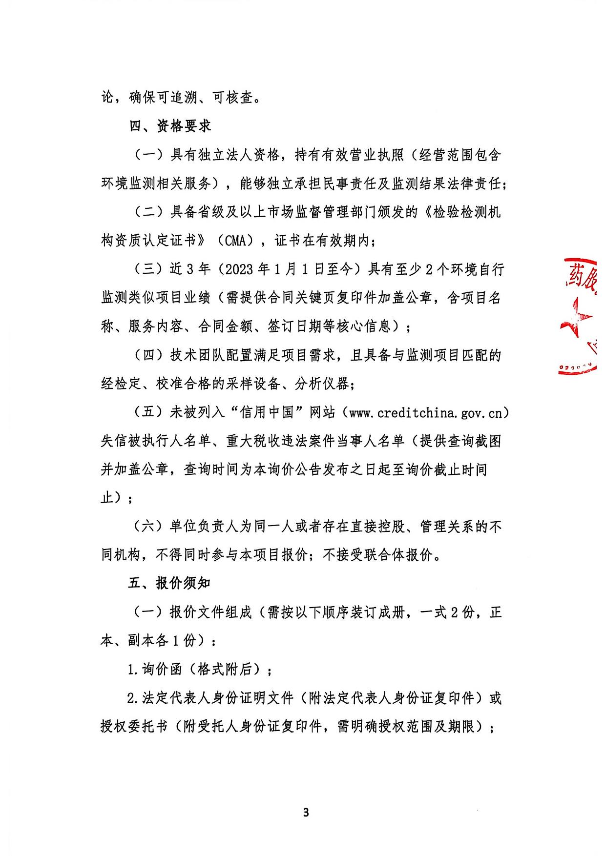 甘肅普安制藥股份有限公司 2026 年度環境自行監測第三方委托詢價公告