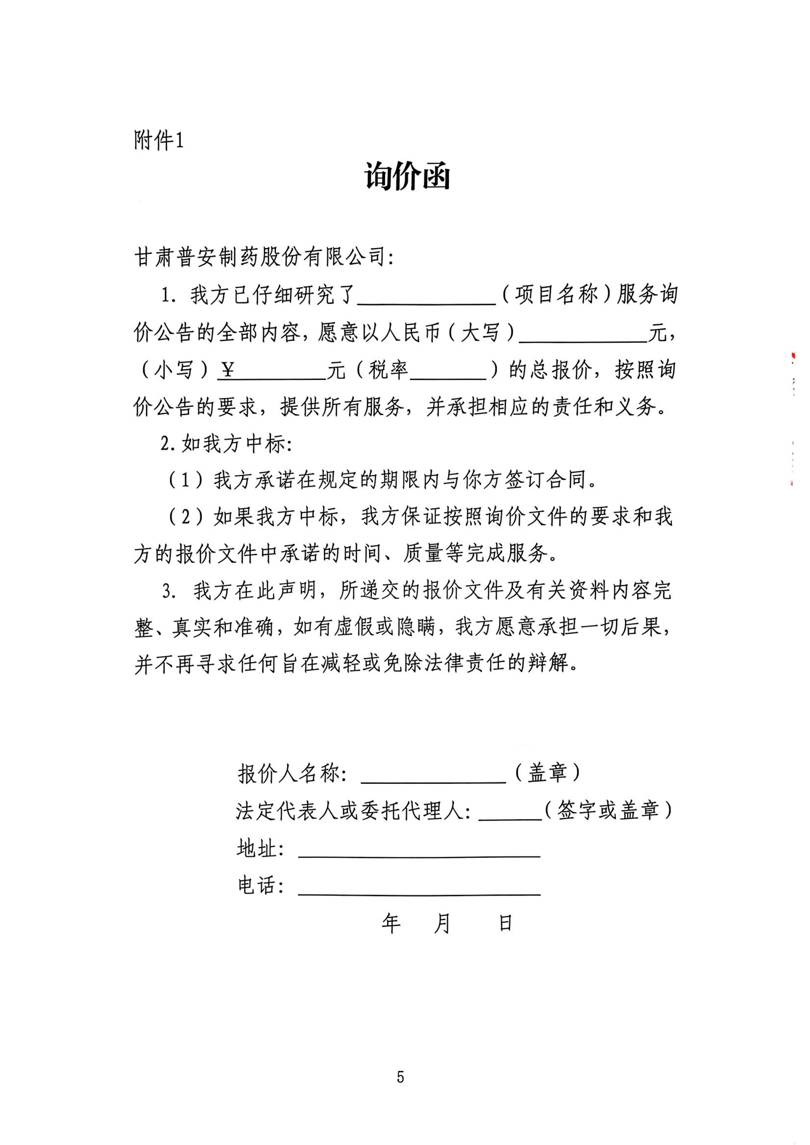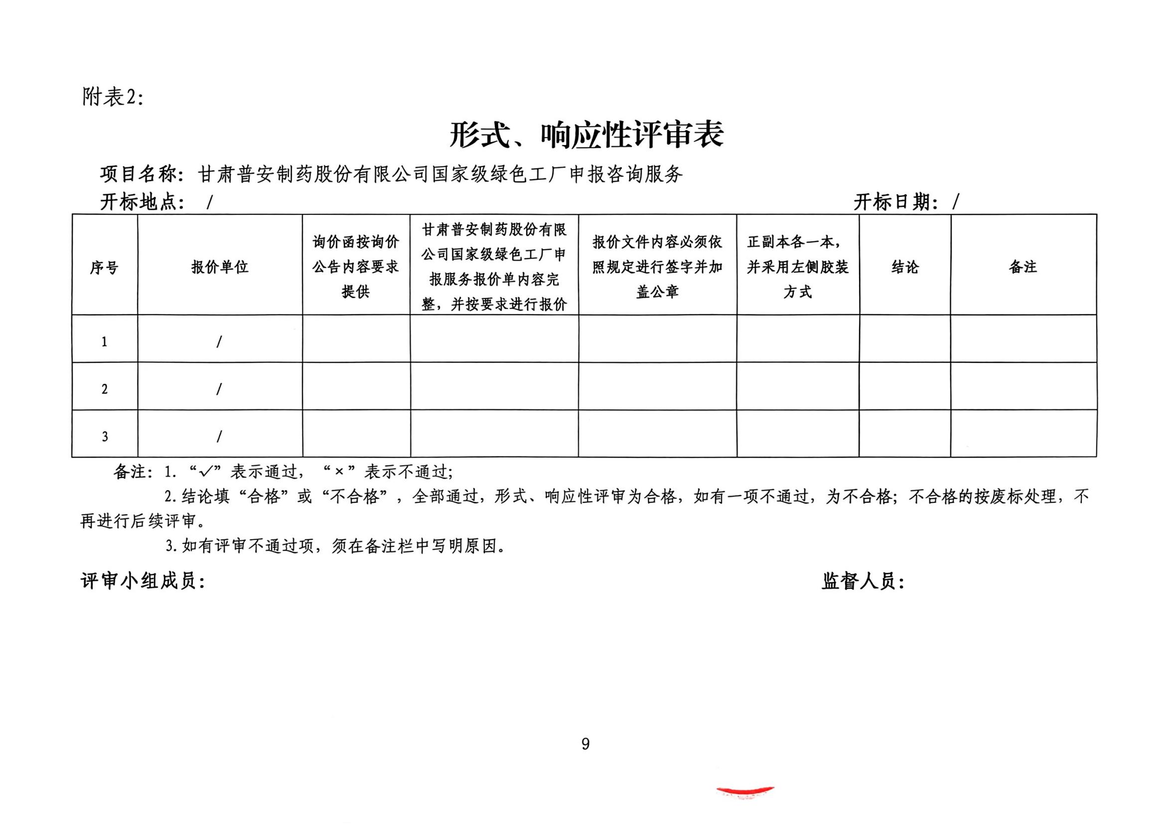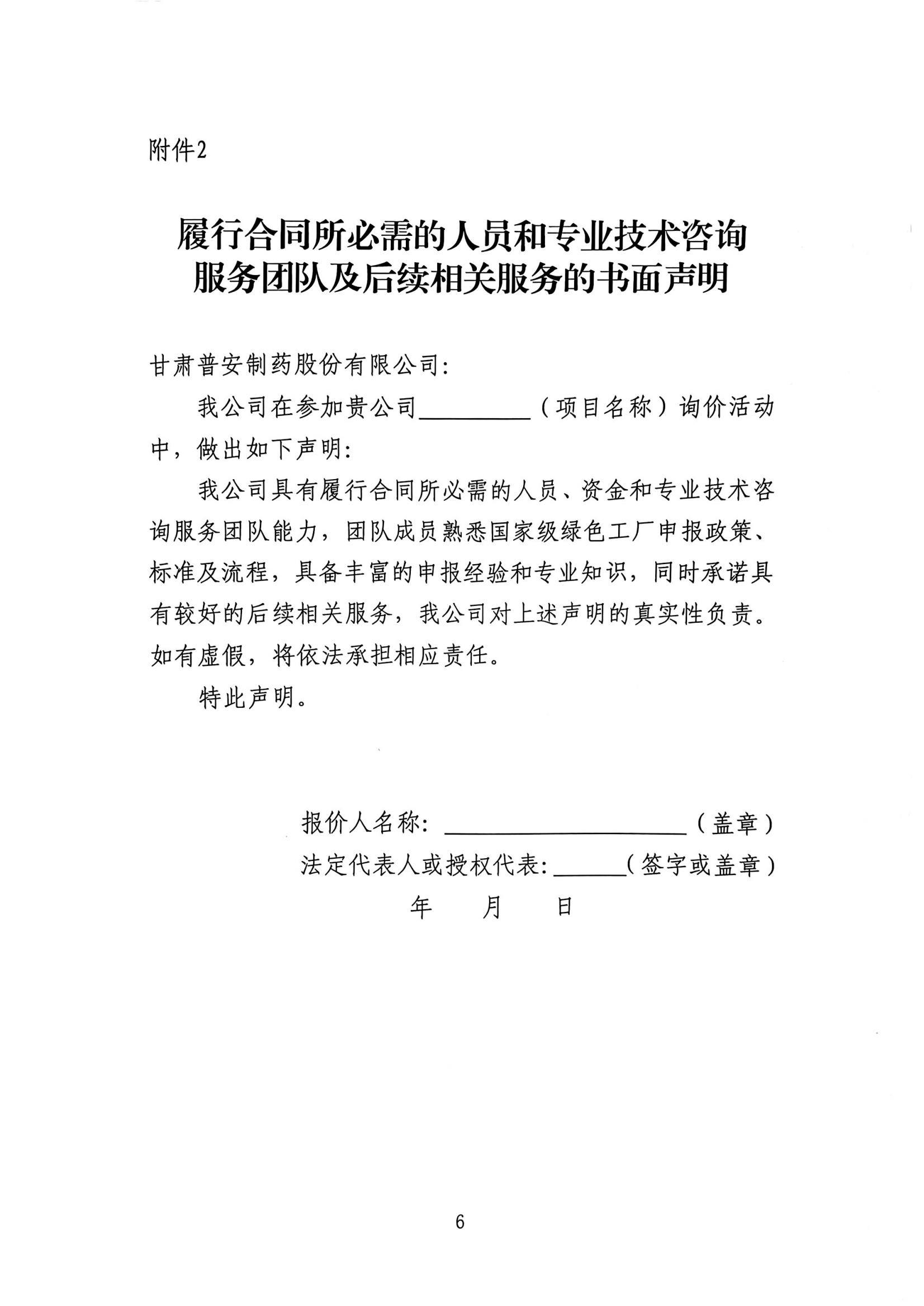 甘肅普安制藥股份有限公司國家級綠色工廠申報咨詢服務詢價公告