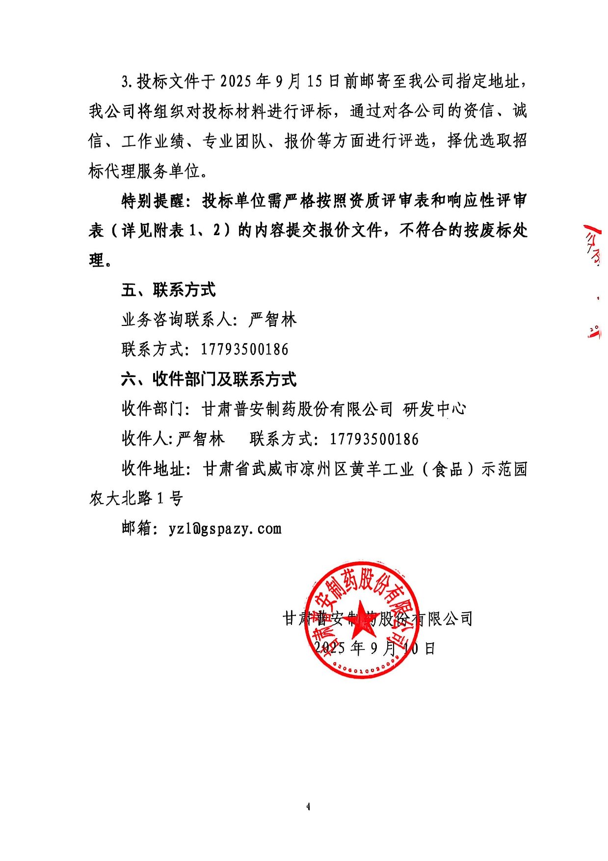 甘肅普安制藥股份有限公司研發項目招標代理服務招標公告