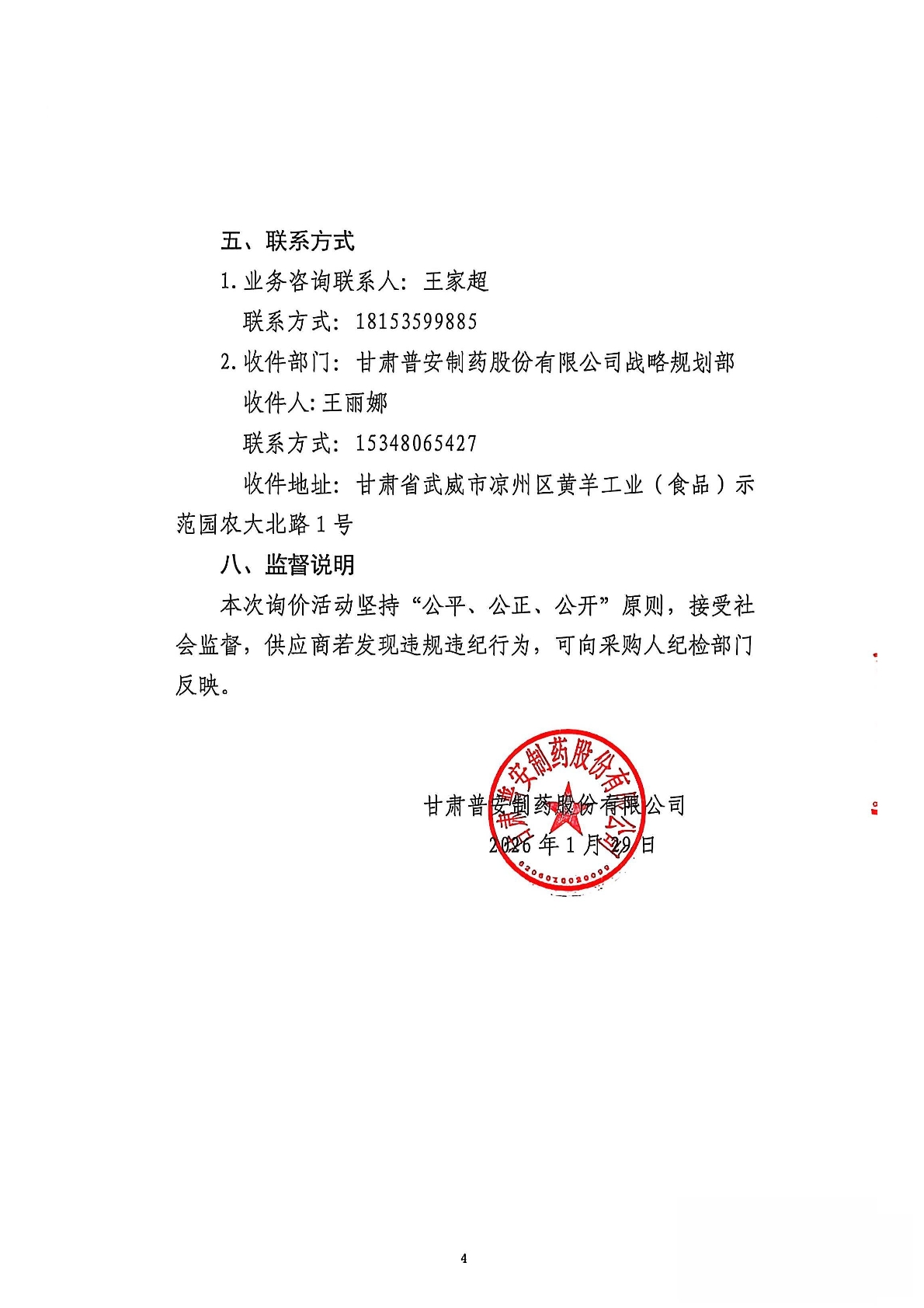 甘肅普安制藥股份有限公司基礎設施改造項目-食堂改擴建工程分布式光伏項目詢價公告
